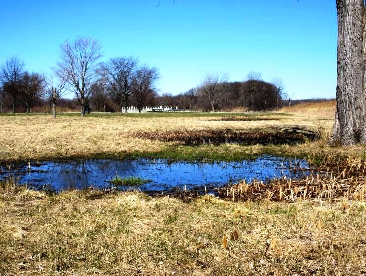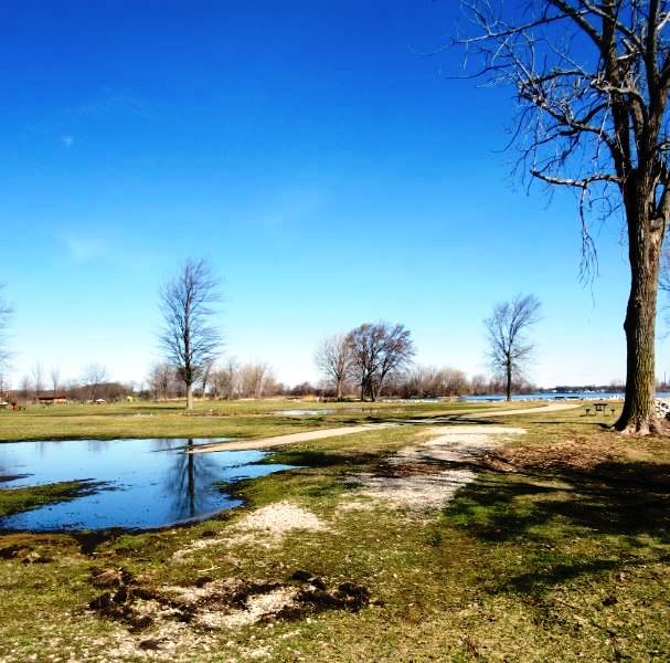 Park benches looked a bit forlorn and the picnic tables were still leaning against one another, like dominoes waiting to fall and, unless you had an intense hankering for a hotdog or burger on the grill, you would not want to be cooking them while standing in ankle-deep water. The hot coals cans were empty, all waiting for a sign of life to descend upon the park, i.e. warmer weather and more sunshine (yes, bring it on please).