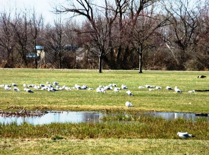 I like seeing the sunshine glistening on the water. Your photos are lovely. I’m glad that when you walked across the soggy area the geese and gulls took it in stride and didn’t come after you.