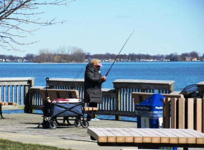 An angler was dressed for the chilly temps. I didn’t see a big bucket for her booty of fish, so perhaps she was tossing them back into the water.