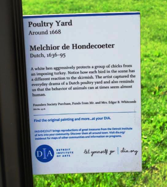 Joni, yes -this is a fun thing the DIA does every May through November at different venues. They had a press release in Winter what cities would receive the paintings and in what counties, so I looked what was near me and there were five in our City. The other two are at the other side of town and I photographed these while walking with no car. A councilman in our City goes around the City visiting parks, businesses and events and has someone take his picture and he says “Where is Councilman Higgins?” So he posed with one of the other paintings and the other one he didn’t mention. I wavered whether to include the one of him but since I didn’t take the photo, I didn’t include it. This is an original painting at the DIA and they put it on the lawn outside of the Lincoln Park Historical Museum which actually is a former post office and a historical building itself. I took a picture of the sign in front of the old post office, but omitted it as it was not about painting per se. Is that exhibit in October that got rescheduled the Immersive Show? I know they had two immersive exhibits, each at different venues, i.e. neither were at the DIA as far as I know.