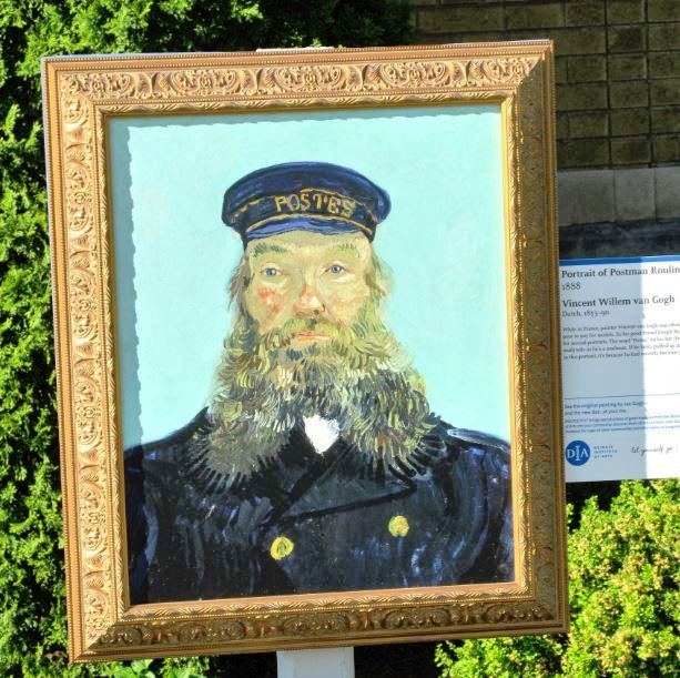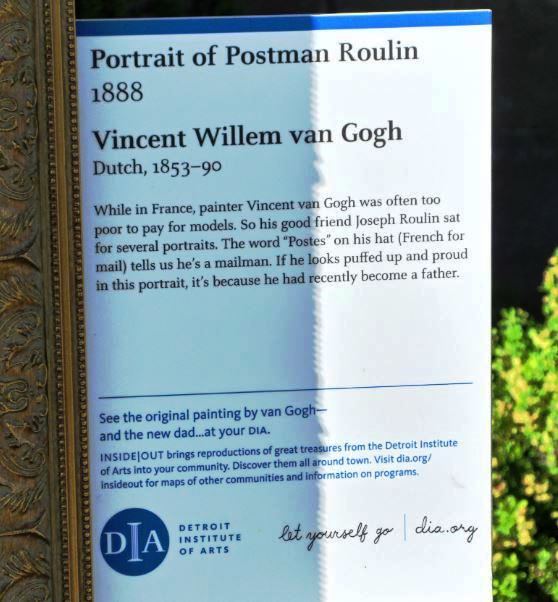 The painting of the postmaster by Van Gogh is placed at the City’s Historical Museum which was a former post office. It is a very old building, that closed some time ago when they built the more modern post office. I took a photo of the sign that marks it as a historical building, but at the last minute left it out as it really didn’t signify art. This is a nice annual event by the Detroit Institute of Arts. I might try to get to Willow Park to see what they put there – it’s a nice Metropark which has lost a lot of its ambianc since the pond where people rented rowboats or paddleboats shaped like animals, had a drain issue and the entire pond is gone. That happened two years ago. It HAD been a scenic place to visit and photograph.