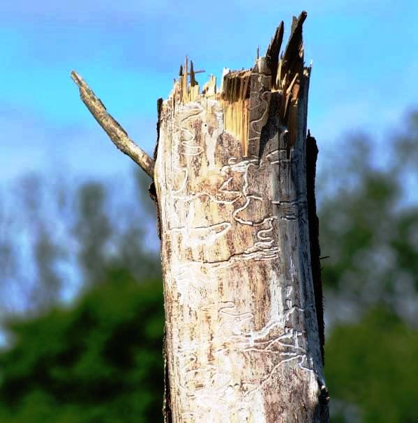 Bark Beatles tunnelling make beautiful patterns