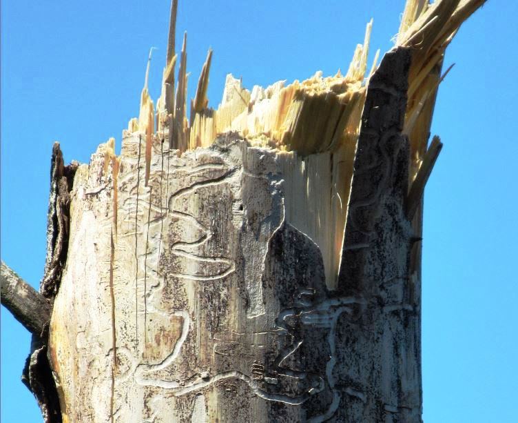Wayne – it just blew my mind when reading these comments before I began responding that everyone knew about these insects and burrowing into the wood and making these designs. I had no clue what it was but knew it wasn’t birds as no beak pecking marks and it wasn’t the weather. This tree is in a lagoon, so no one was messing with it! I learned something today!