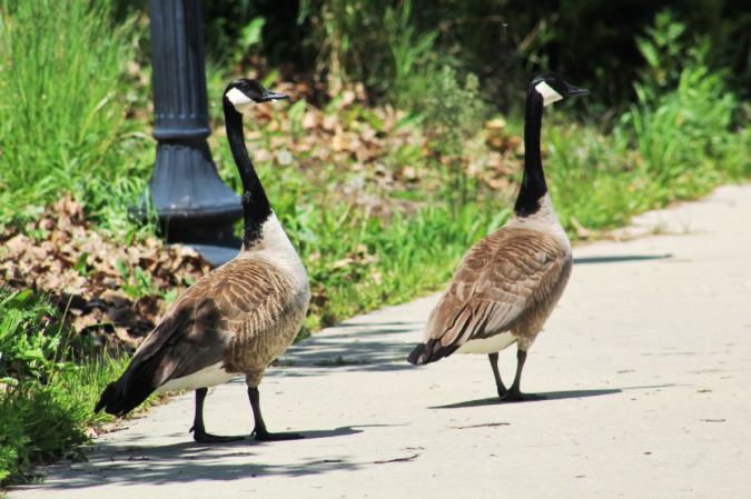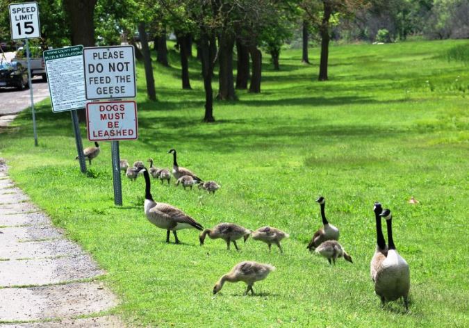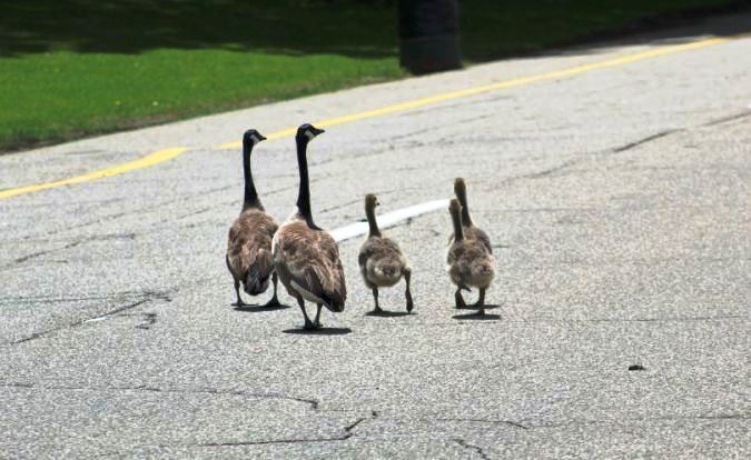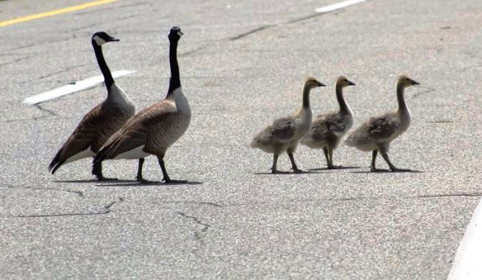 I am less enthusiastic about geese that take up residence in populated areas. There are a couple of apartment complexes near me across the street from each other, each with a large pond. Geese are constantly crossing the street and taking their sweet time when they do. I swear they know they have some kind of legal protection because they are not the least bit concerned about people or cars.