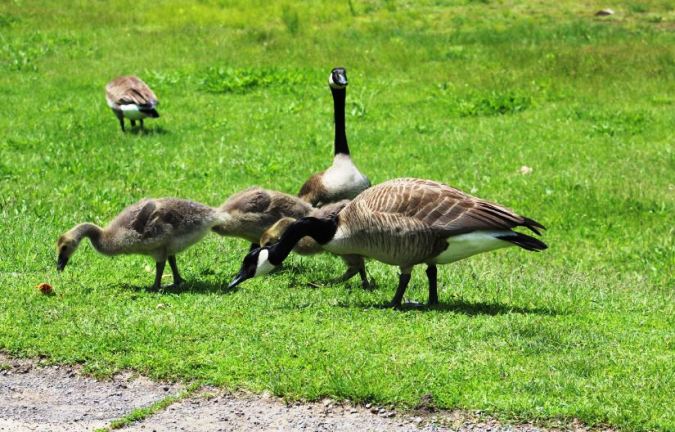 So now that Your Roving Reporter has caught you up on the who, what, when, where, why and how of our feathered friends’ Summer holiday, I have a few photos to share about what the geese are doing on land at Elizabeth Park.