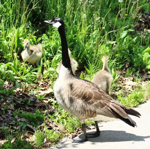 LaShelle, yes they are really grumpy when they have their goslings in tow and they monopolize the path at the Park so you have to go around them or get their hissing and wing flapping. But I do miss them as they add some character to my walk. Earlier this year I documented the goslings at one-week intervals in the month of May. It was amazing how quickly they grew from fuzzballs to teenagers with temperaments.