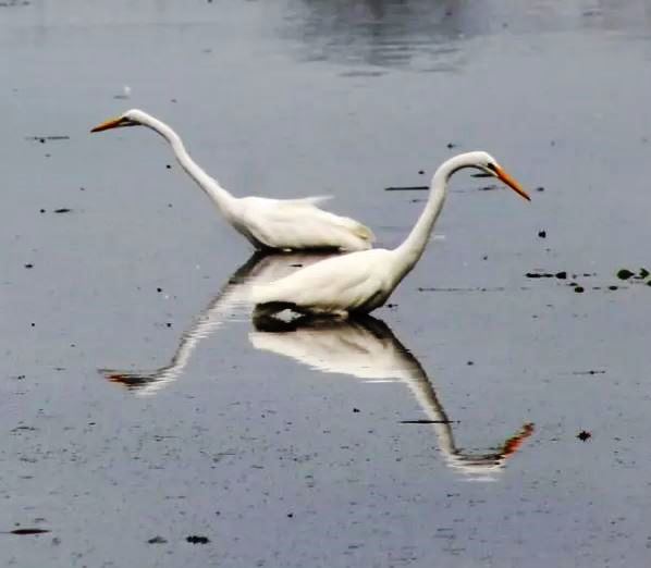 I last visited the DRIWF on October 10th but just two months later, on December 11th, I was astounded to see how much the water level had dropped since then. The Delta was so shallow I could see the sandy Delta bottom, plus many schools of minnows scurrying about. With no Herons or Egrets to gobble down those tiny fish, this duck dived over and over again to feast on the minnows, much to the delight of the trio of humans who watched, while merrily clicking away.