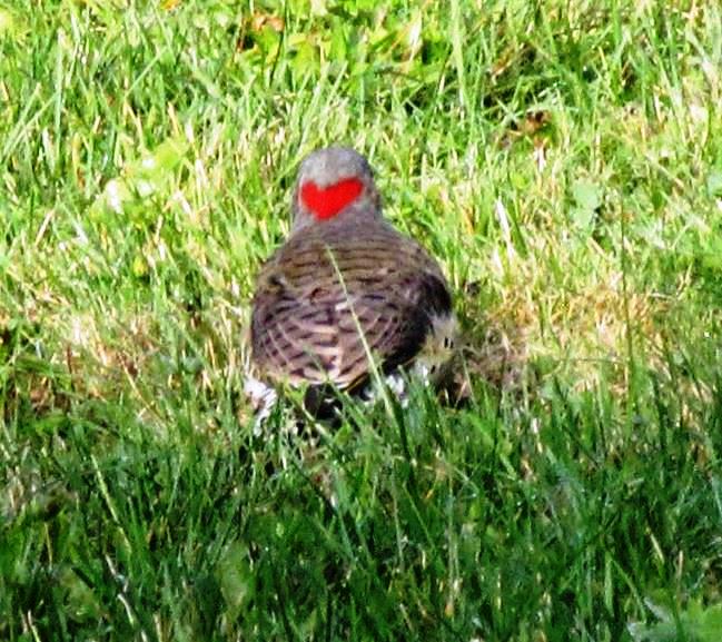 Yes, I was lucky. Anne, I meant to tell you yesterday in my reply to your comment, that it was you that told me the bird I heard every morning was a Flicker. A few years ago I described this bird call that sounded like one of those exaggerated noises you’d hear in the jungle (like some kind of Toucan or jungle bird) and you identified it right away as a Flicker. On this day, a group of birds flew by me into the baseball field at Council Point Park. I tried to figure out what they were as they were big and I knew they were not doves, so it was then I recognized the plumage from when I Googled it to see what a Flicker looked like. They all flew away but this one.
