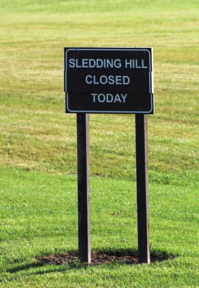 It was forecast to be a hot-and-sticky holiday weekend, with potentially severe storms to cap off the 4th of July and kick the heat and humidity down a notch or two, (of course … when we all went back to work). Just moments after I parked the car, a bead of sweat rolled down my face simultaneously with seeing this sign about sledding – well no chance of sledding today!