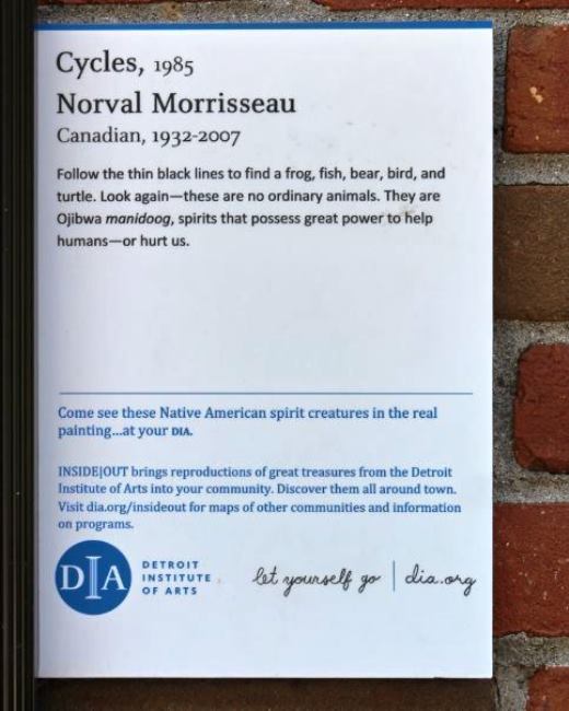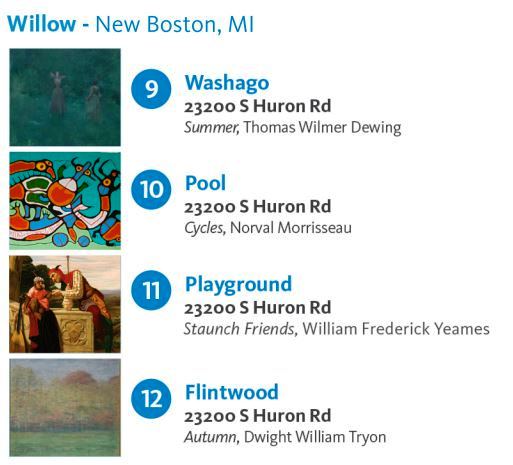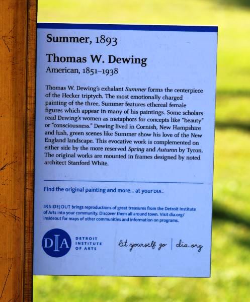 After visiting the sad remains of Washago Pond, chattin’ it up with the bikers and hunting down a fawn, it was getting warmer by the moment and I had not located any artwork yet. I saw the same friendly worker, again on his golf cart. I asked about the DIA reproductions, only to discover one was nearly in front of my face – oops.