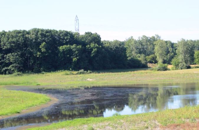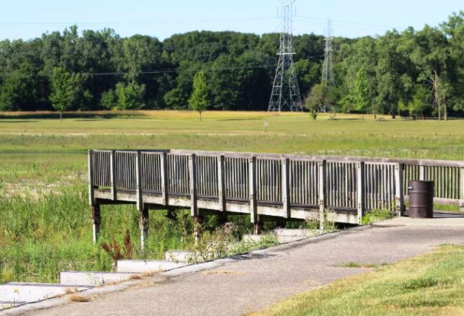 I follow the Metroparks on Twitter, plus get an e-mail of news and events at the 13 Metropark venues, but had not read any updates on Washago Pond recently. Clearly, from the looks of things, they had not yet started any repairs. I saw a Metropark worker in a golf cart whizzing around and waited for him to near me, then waved him down to ask the status. (Yes, Your Roving Reporter, must stick her nose in the newsy updates of all her walking venues.) I was surprised to learn that Washago Pond’s underwater structure was beyond repair, so they were going to just let grass grow over it permanently. Wow – I decided to cross this venue off my list unless I ever use the bike trail, as there is really not much else to see here. But wait ….