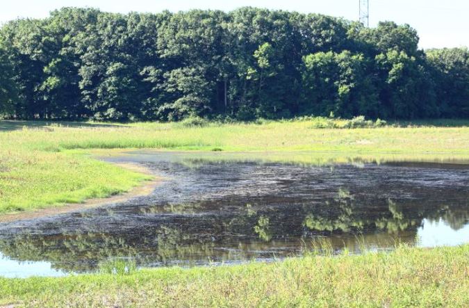 This is how Washago Pond looked just one year later at this visit. A sign explained the misfortune.