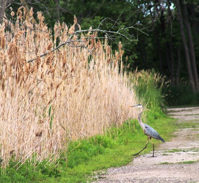 Glad you liked it Shelley – this Heron just cracked me up when I saw it. It was strolling along, away from the water, down this gravelly path on the trail, turned sideways and looked at the reeds. I was ready to take its picture flying up and it just continued down the road.
