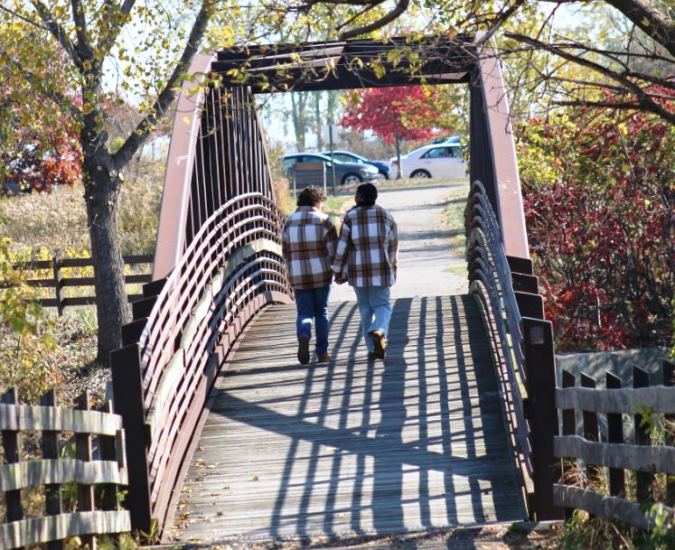 It was a gorgeous Fall day rajkkhoja with all the colorful leaves and the sun shining. I saw the couple crossing the bridge and noticed the shadows and knew it would be a fun photo.
