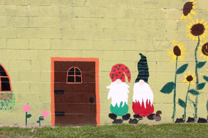 Thank you so much Linda for the shout out & the lovely pictures. What a difference some paint makes! I do like murals by non-professional artists. Sometimes they seem a bit more real & close to life. Also, I really like those little parks tugged away, that hardly anybody knows. Let’s give it up to gnomes on this wonderful public holiday — Is May 1st a holiday for you?