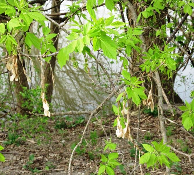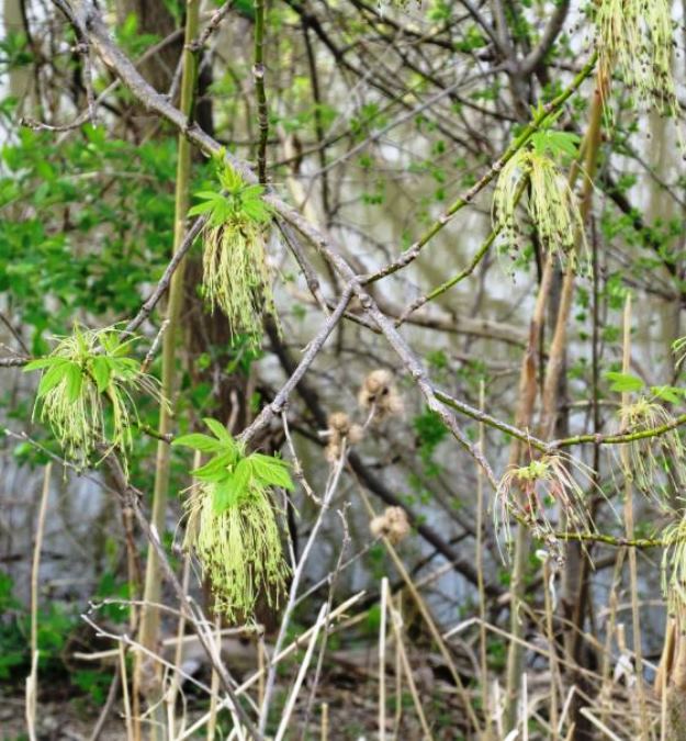 Groups of pendulous seeds were hanging from trees, reminding me that in a few weeks’ time, those Maple seeds a/k/a “helicopters” would be fluttering down and embedding themselves into the grass and gutters – ugh.