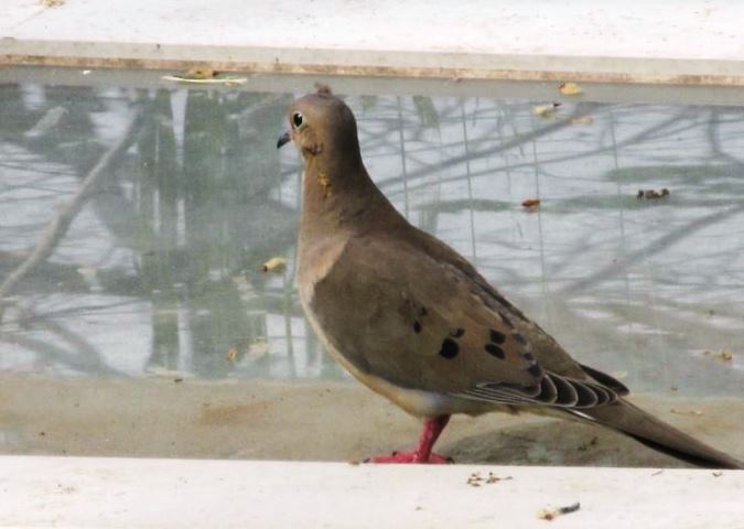 … and in a special glass-topped mushroom grow box. This Mourning Dove was not as interested in mushrooms as it was its reflection.