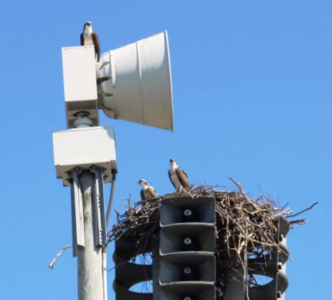 On second pondering…….I don’t think the fire station would allow any equipment up there to record? Imagine the public seeing the effects upon a family of Osprey when that siren goes off? I’m sure the video would go viral with many people demanding that they should not have to suffer like this!