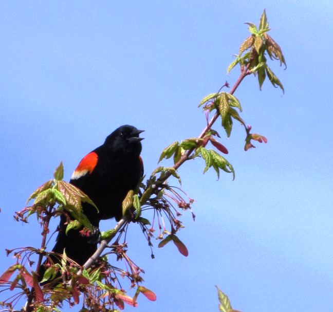 I see ours in the Spring; they are the first birds to return and it’s a welcome sound at Council Point Park in the marshy areas where they like to hang out. You know warmer weather can’t be far off when you hear them. The RWB are around all Summer, but have been gone about a month now. They are strong singers!