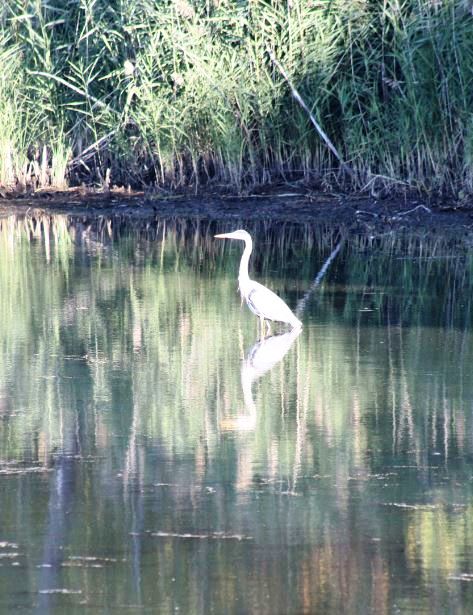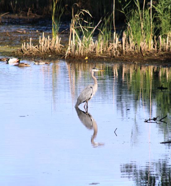 A Great Blue Heron and a Great Egret were wading in the marsh, both intent on scoping out breakfast and paid no attention to me.