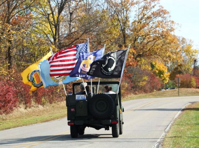 While I promised in my recent “Walktober” post not to inundate you with colorful leaves shots every week, embedded in this post will be a nod to Veterans Day, November 11th – you will see a jeep flying military flags driving through this 1,607-acre park. The first time they zoomed past me, but on their return trip, I got a few shots.