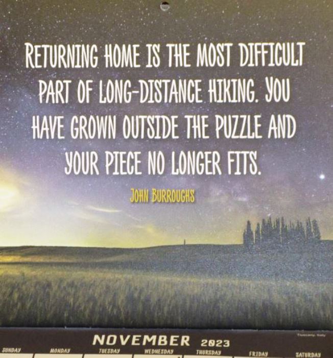It’s the first Monday of a new month and November’s featured calendar page is Tuscany, Italy. The photo looks a bit nondescript in my opinion and I’ll freely admit that a long-distance hike for me is six, maybe seven miles, only on my weekend wanderings – more miles in a single outing risks shin splints.