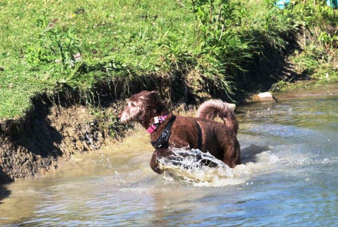 It was a bit early for the “Dog Days of Summer” but this pooch took an enthusiastic romp through the canal water.