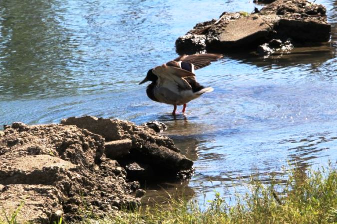 … and also missed the first Mallard as he quickly performed his morning ablutions, then drip-dried with a wing flap or two or three.