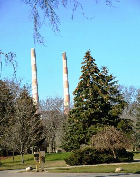 Longtime readers will recall my photos taken along the Detroit River shoreline parks or at Grosse Ile included glimpses of the Trenton Channel Power Plant with its massive boiler house and twin smokestacks that resembled peppermint sticks. The “Stacks”, as locals referred to them, were visible in this view from nearby Grosse Ile as they towered over the landscape.