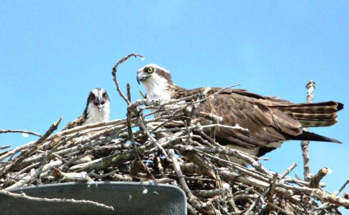 Yes! I was happy to learn that Zazzy because last year when I posted pics of the couple, then the couple with their two offspring, people wanted to know if they turn the sirens off and I didn’t know, so now I do know … that’s great because a siren that big would scare them right out of the nest for goodness sake. The other Osprey I took photos of DID make a nest near an electrical wire and was causing shorts and nearby neighborhood customers to lose their power So the DNR build the platform, moved the nest, with eggs in that nest, all under the watchful eye of the parents. They hatched and all was well and now their home doesn’t cause power outages as it isn’t near wires. 🙂