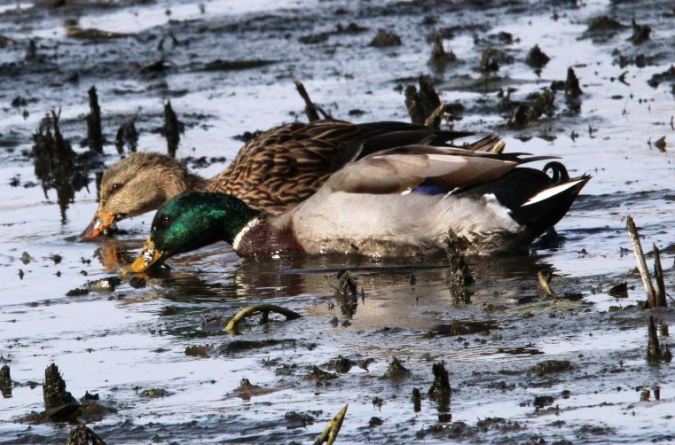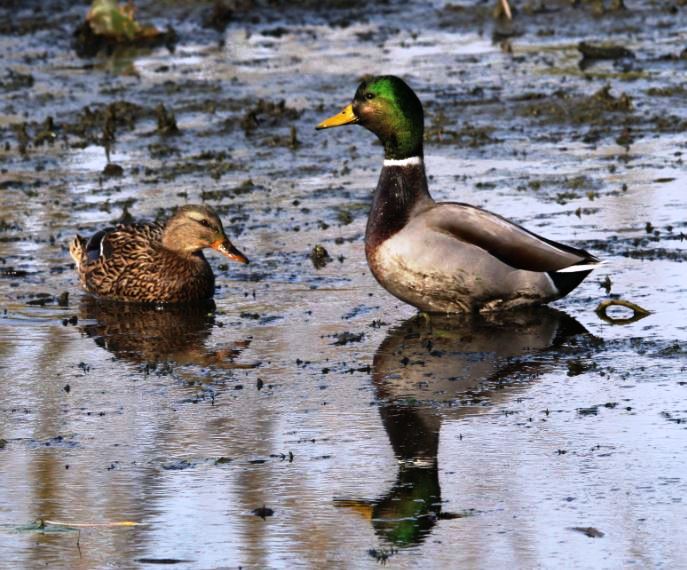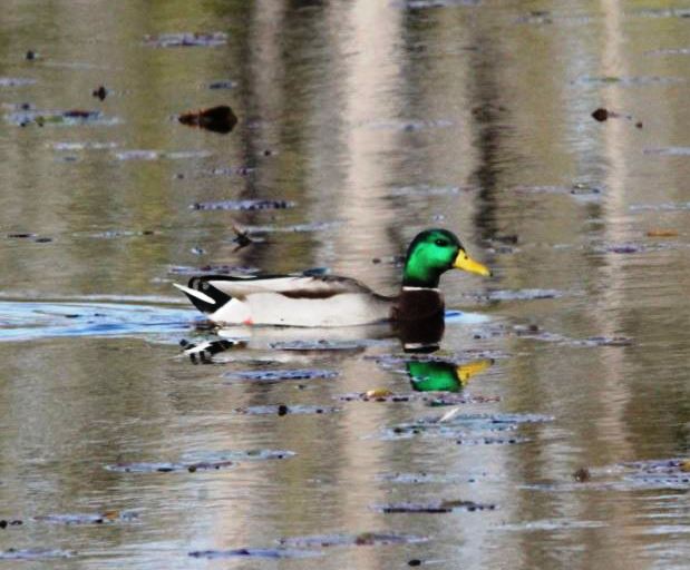As I meandered along the Sterling Marsh Trail, I had a few glimpses of Mallards in the lagoon, amidst the reflections of the trees in the background.