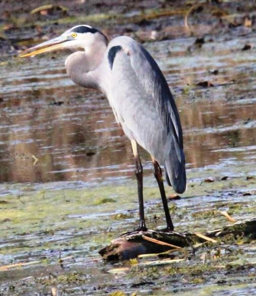 … and, while taking that photo, a Great Blue Heron that I hadn’t seen, suddenly got spooked, squawked noisily and flew off …