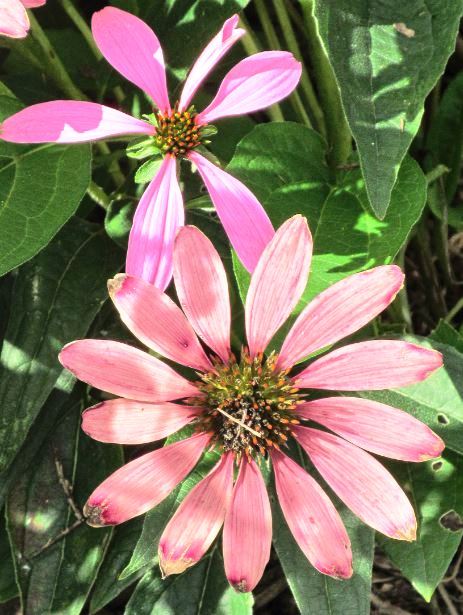 Diane, I had been walking at Council Point Park for five years already when I got my first Metropark pass in 2018, then I took that boat tour and out on Lake Erie was a huge group of ducks – they were all brown and looked the same. The guide told us about “eclipse phase” and said one month a year, it is the same brown color for all Mallard ducks, but he said they all have the blue wing feathers year-round. You can see the males transitioning to their permanent plumage in some of the ducks as they have the chocolate brown fronts where the females are all the speckled brown color. We have geraniums blooming away here … I don’t know how they’ll look after Thursday’s inch of snow – ugh. But it is 60 degrees now at almost 6:00 p.m. I liked those pink daisies, in a dusty rose color – I don’t think they were coneflowers as they weren’t shaped like them.