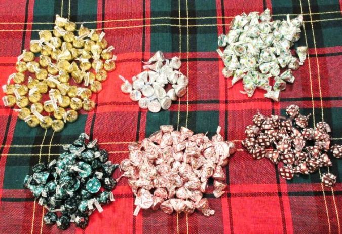 Guaranteed to give you a sugar high, even looking at it on the screen. 🙂 I had no idea that Hershey’s made so many types of Christmas Kisses. I liked the Santa hats too – they are solid milk chocolate, but they also have hot chocolate, sugar cookie, mint truffle, candy cane, cherry cordial and red-and-white Hugs.