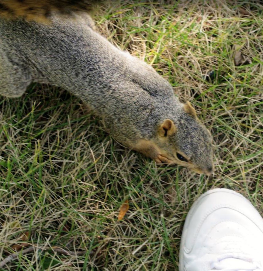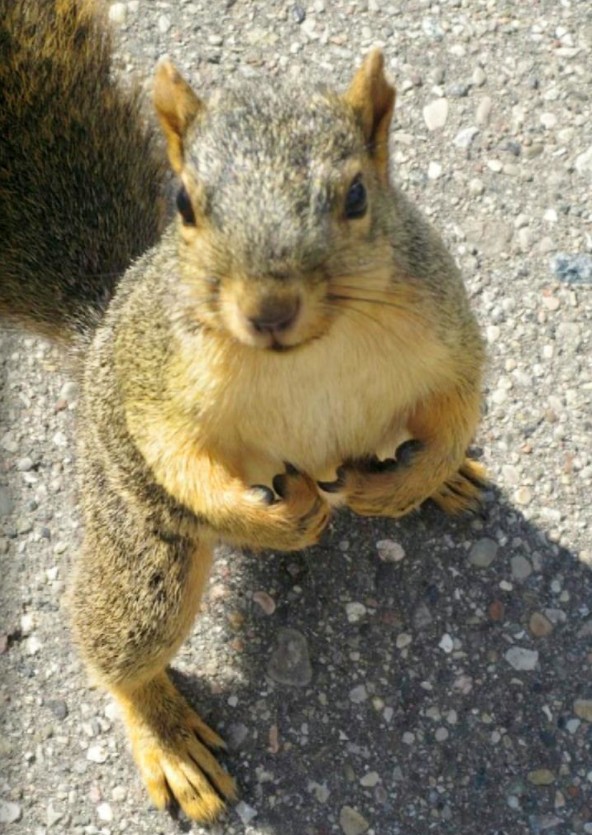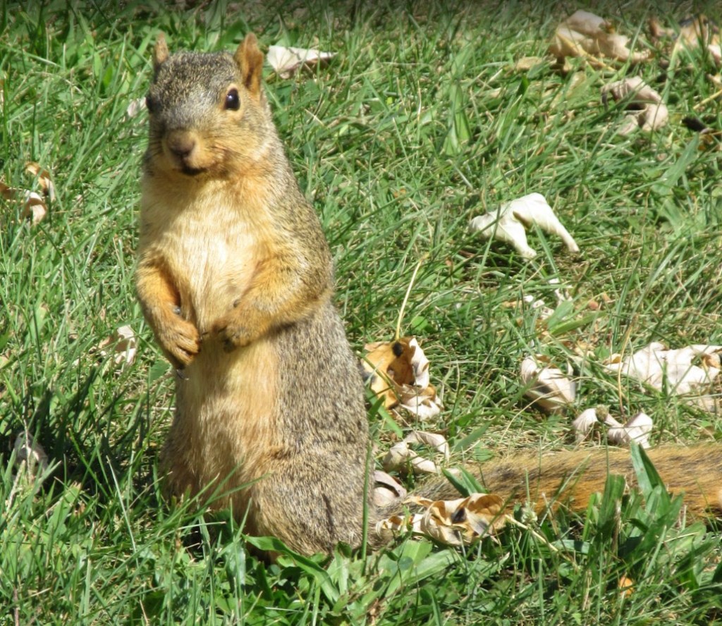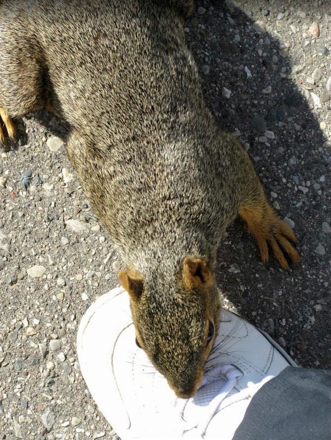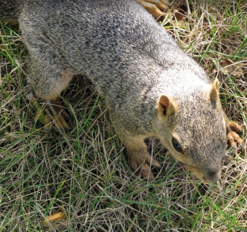 That first day I saw three squirrels:  a female Fox Squirrel came bounding over to me right away and parked herself at the tip of my walking shoe, one front paw placed on top.  I felt tears welling up in my eyes as she studied me.  I swear this is Parker’s mate, whom I had dubbed “Penelope” and I had even written a fun post about Penelope and Parker when I first saw them together – you can find that post here.