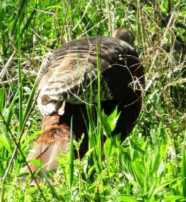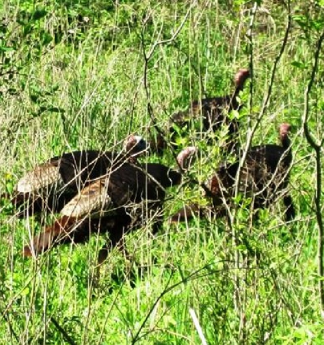 Really? Thank you for sending them here Diane! 🙂 I wish I’d see more of them. I see these four turkeys nearly every time I go to the Environmental Interpretive Center. They hang out in the bushes and tall grass (full of ticks or I’d step closer to them). Once they were on the Gateway Trail and I didn’t see them crossing ahead of me as I was looking up in a tree to find a Goldfinch I heard singing … turned around and they were crossing very quickly. All I captured were the last one’s tail feathers!