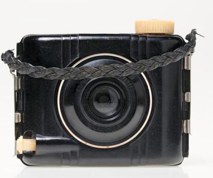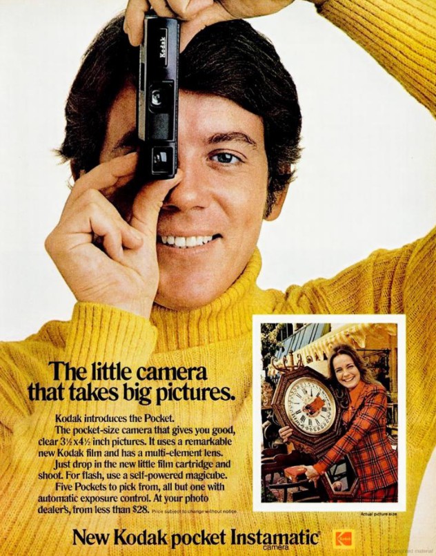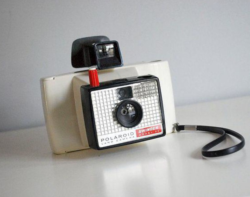 This camera’s TV ads touted the ease of instant picture-taking and had a catchy jingle,“Meet the Swinger, Polaroid Swinger”. It was great to skip the hassle/cost of photo development, plus it was fun to watch a photo emerge from the camera instantaneously.  However, the liquid preservative brushed onto the photo afterward smelled like nail polish remover, so I was relegated to using it in the basement (“far away from the furnace Linda!”)  The finished photograph’s colors seemed unnatural.