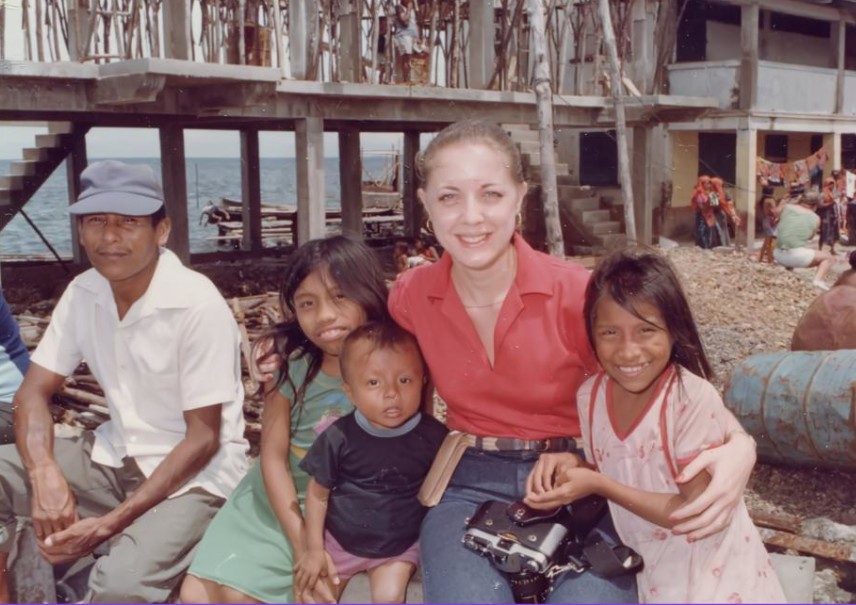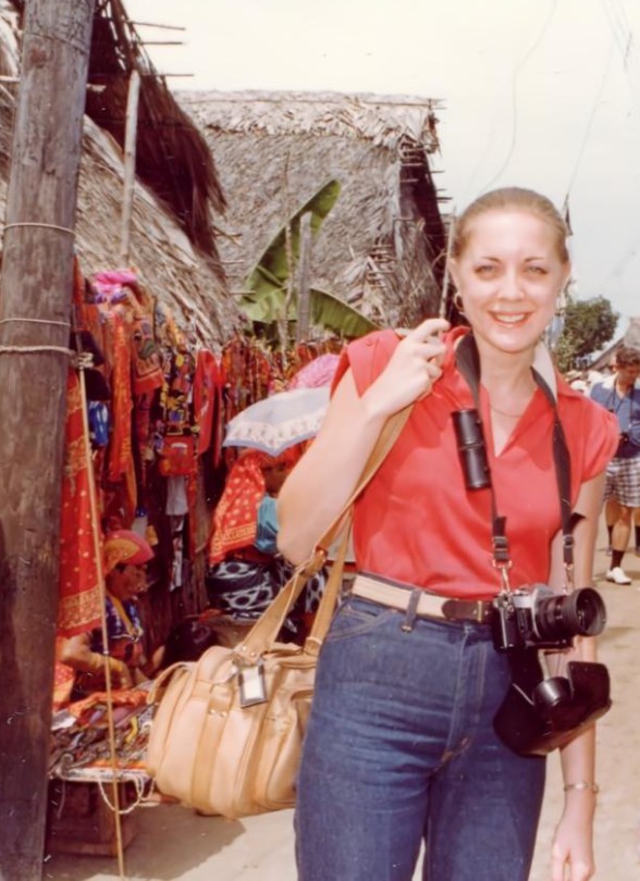 Some of my favorite photos were taken by the ship’s photographer who accompanied the Panama Canal cruise land tours. He took these two photos in the San Blas Islands, the first, laden down as usual with camera equipment. It was a stinkin’ hot day, with no breeze and I felt like I’d melt.