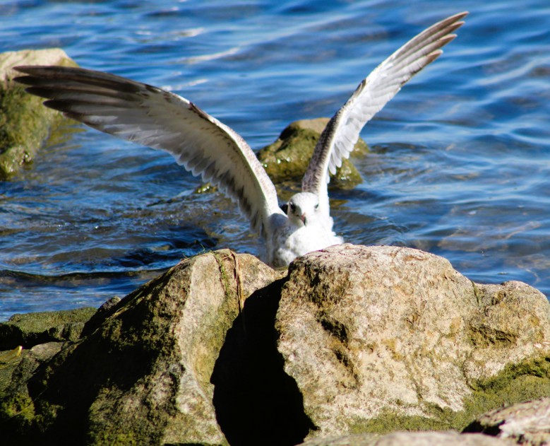 I know! That gull really swooped in, but was too low and missed the big rock entirely. It was not hurt, as it flew away a few minutes later, probably hoping none of the other gulls saw him.