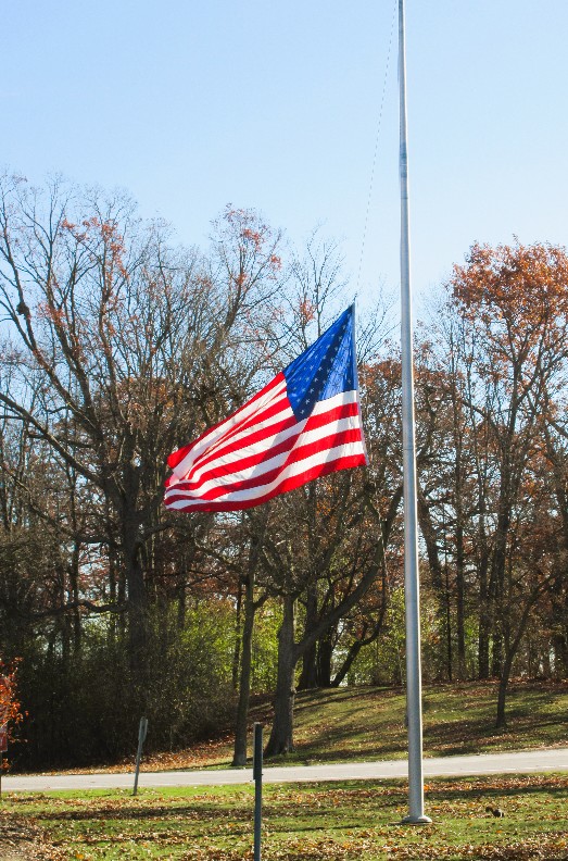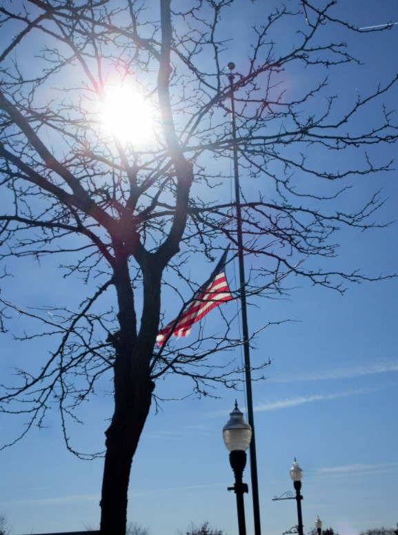 The flag was snapping in the stiff breeze, at half-staff in recognition of former Vice President Cheney’s passing.