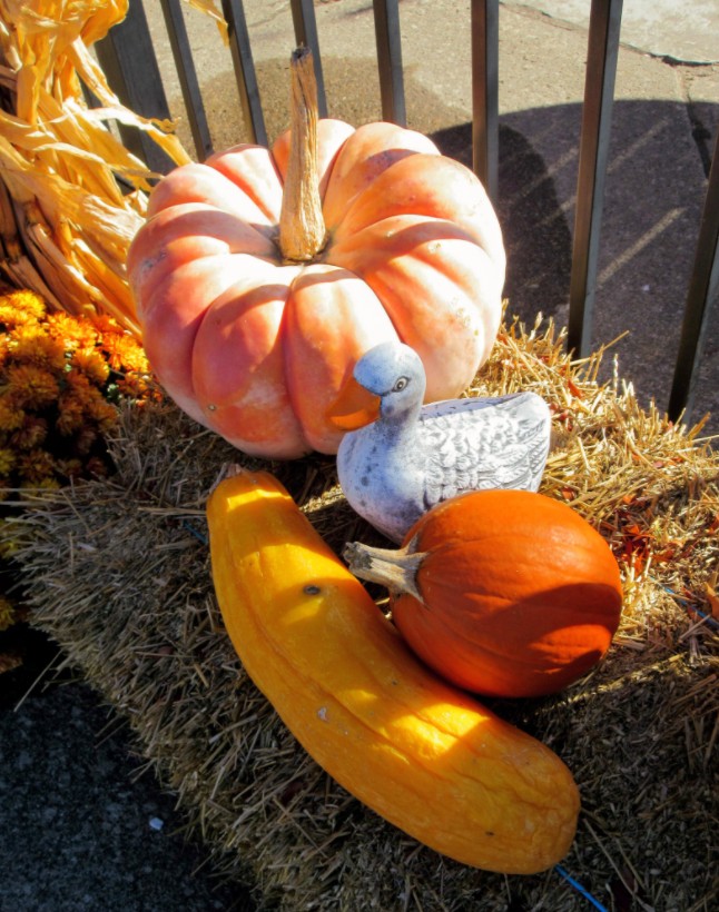 After spending considerable time both admiring and photographing that whimsical mural, I meandered along West Jefferson Avenue, enjoying a picture-perfect day.  I was mindful of the mishmash of holidays, i.e. the harvest season mingling with the holiday season, as the latter waited patiently in the wings.  At that time, Fall, like many of the tree leaves, continued to hang on forever.