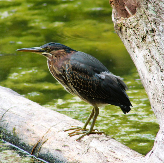 I mused that I must have taken 500+ photos already and there would be many more when just moments later I saw a Green Heron alight on a log in Ford Lake.  I was in a great place to photograph it, but could it not have smoothed those feathers sticking out of its otherwise perfect plumage?  😊