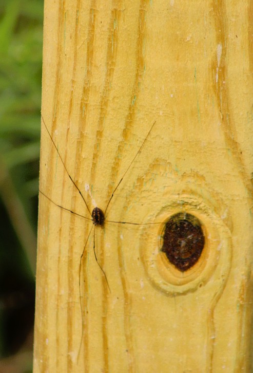 If you look closely, you’ll see a dark speck near the knothole.  It was a Daddy Long Legs sunning itself.  As a person who suffers from arachnophobia, I’ll admit this long-legged arachnid is the ONLY spider I’d willingly approach.