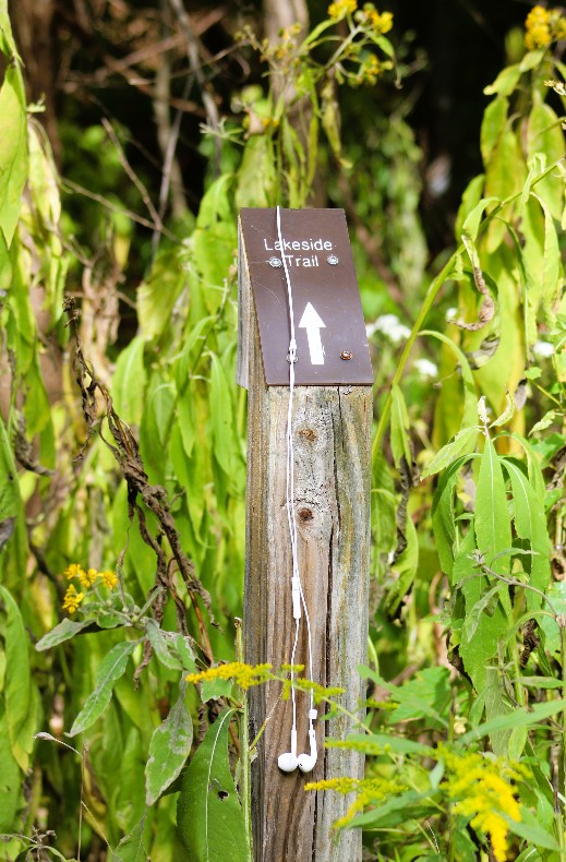 There are 120 acres of natural spaces and multiple trails in this area, but I like Lakeside Trail best as it gets closer to the water.  I admit I had some trepidation about going on this trail, which is rather rustic and narrow in spots.  I had avoided many of my favorite woodsy venues, not only because of Summer’s oppressive heat, but due to the abundance of ticks.  After the Winter of 2024-2025, many experts weighed in on how the ticks should have died during the bitter cold temperatures, but they were all wrong. Surely they will die off in this current Winter!