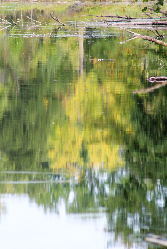 I arrived at Ford Lake, but there was nothing remarkable to see except some early shades of Fall as seen in these reflections.