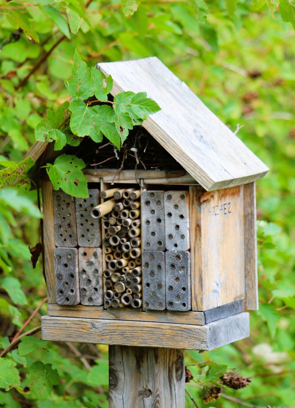 I paused at the bee hotel and found no bees here, so I guess they were off seeking pollen.