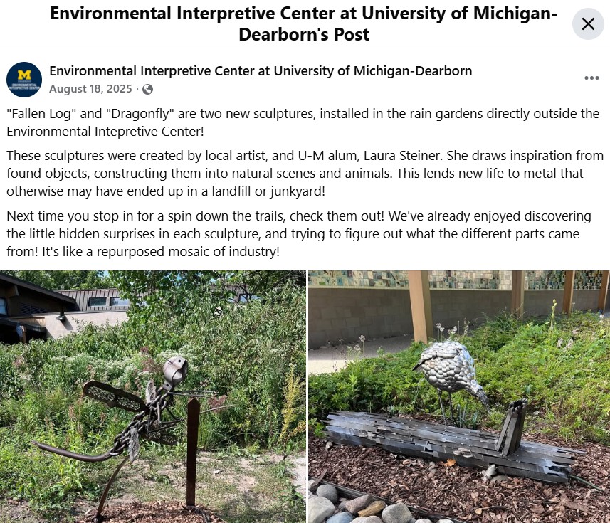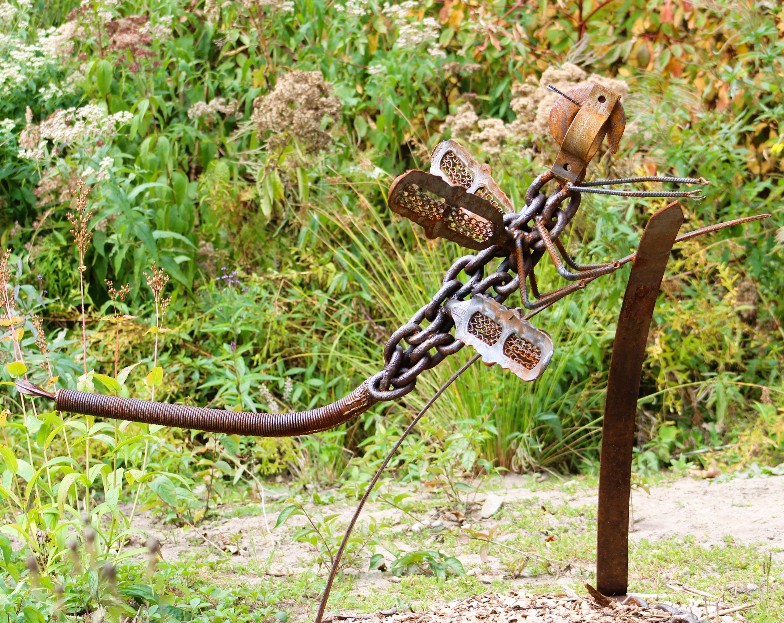 I was still feeling good about the dragonfly photos I’d captured just the day before at Lake Erie Metropark, but I was curious about a metal version of a dragonfly.
