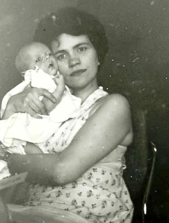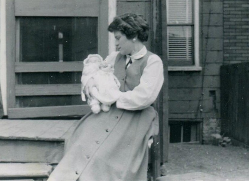 This photo of Mom and me was taken a month later, in May 1956, in my grandparents’ backyard.
