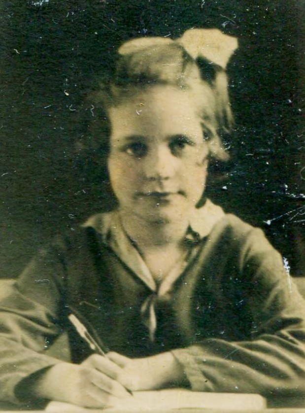 In July 1937, in a careless childish moment, Pauline ran between two parked cars. The driver, a soldier home on leave, didn’t see her, put his car in gear, hitting her. The car’s high front grille broke a few of Pauline’s ribs and tore her stockings. She was rushed to the doctor’s office where her broken ribs were taped up and young Pauline was scolded by her mother for tearing her stockings. The soldier’s insurance company representative went to my grandparents’ house, asking them to sign off on the paperwork that Pauline was fine and they did so.