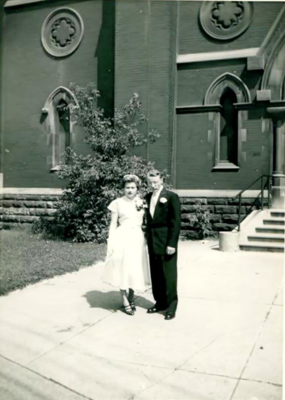 My parents met in 1950 when Pauline was sitting on the front porch of her home and Max walked over and asked for directions. He had just moved here from Germany. They were married in 1953 in St. Helen’s Church.
